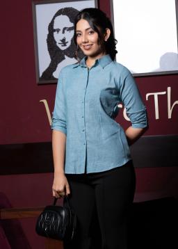 Effortlessly transition from desk to dinner in this versatile button-down. Crafted for comfort and style, its classic silhouette is elevated by chic roll-tab sleeves, offering adjustable coverage for any occasion.