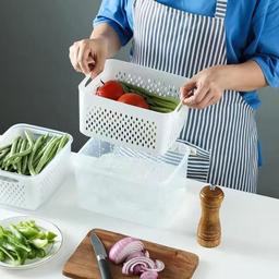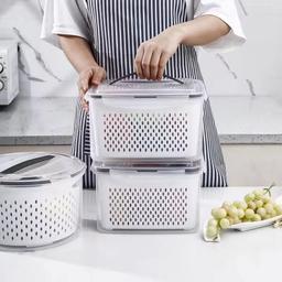 Keep your food fresh and organized with this 5-piece set of airtight plastic food storage containers. Featuring removable drainer trays, these containers are perfect for washing and storing fruits, vegetables, and leftovers. The secure airtight seal locks in freshness, preventing spills and odors. Durable, BPA-free plastic makes them ideal for refrigerators, pantries, and meal prep. Say goodbye to wilting produce and hello to longer-lasting, delicious food.