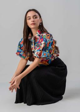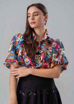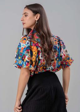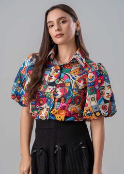 Embrace artistic expression with our Abstract Faces Puff-Sleeve top. This unique piece features a captivating abstract face print that adds a touch of avant-garde flair to any outfit.