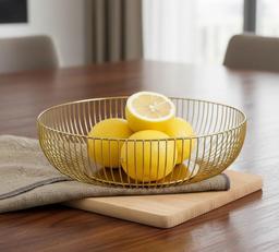 Elevate your kitchen or dining space with the Aesthetic Gold Wire Fruit Basket. This stunning piece combines elegant design with practical functionality. Its open, airy wire construction beautifully displays your fresh produce, keeping it visible and accessible. The chic gold finish adds a touch of sophisticated glamour to any decor, making it a statement piece as well as a convenient storage solution. Keep your fruits perfectly presented and within easy reach.