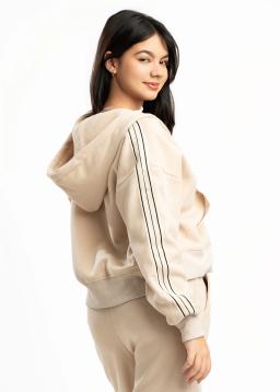 Cozy up in effortless style with our Beige Zip-Up Cropped Hoodie. Crafted from ultra-soft fabric, this must-have features a convenient full zip closure for easy layering and a modern cropped silhouette that pairs perfectly with your favorite high-waisted bottoms. Its neutral beige hue makes it a versatile staple, ideal for casual outings, post-workout comfort, or just lounging in ultimate relaxation. Effortless chic and comfort redefined.