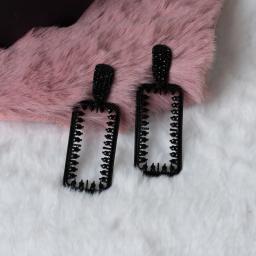 Make a statement with these striking Black Studded Open Rectangle Dangle Earrings. The edgy stud design meets elegant dangling rectangles, adorned with subtle yet impactful black studs for a touch of sophistication.