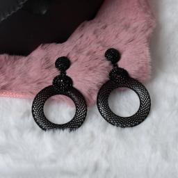 Effortlessly chic, these black textured circular drop earrings add a touch of modern sophistication to any look. Their unique textured finish catches the light beautifully, creating a subtle yet eye-catching shimmer.
