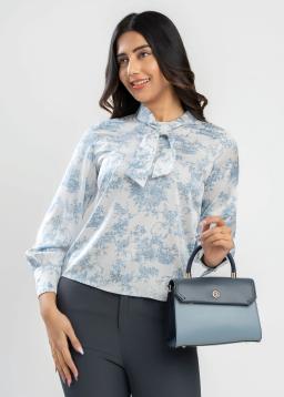 Embrace effortless elegance with our Blue and White Scenery Print Tie Neck Blouse. This chic top features a captivating print inspired by serene landscapes, bringing a touch of artistry to your wardrobe. The versatile tie-neck design allows for customizable styling, whether you prefer a demure bow or a relaxed knot. Crafted from a lightweight, breathable fabric, it offers all-day comfort and a flattering drape. Perfect for dressing up or down, this blouse transitions seamlessly from casual outings to more polished occasions. Elevate your everyday style with this beautiful and versatile piece.
