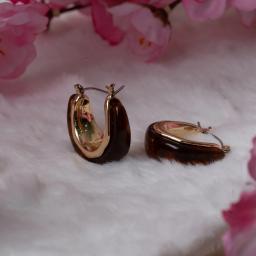 Elevate your everyday style with these chic brown resin and gold demi hoop earrings. Their polished gold finish beautifully complements the rich, earthy tones of the resin, creating a sophisticated and versatile accessory.