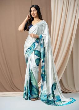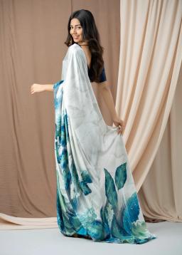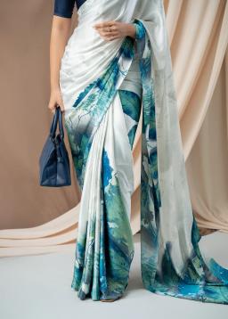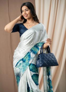 Drape yourself in timeless elegance with our Classic Blue and White Floral Printed Silk batik Saree. Crafted from luxurious silk, this saree offers a smooth, lustrous feel and a beautiful drape.