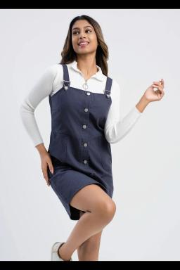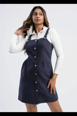 Classic style meets modern comfort in this button-front overall pinafore. A timeless piece perfect for layering over your favorite top or wearing on its own. Durable fabric and a flattering fit make this a wardrobe staple.