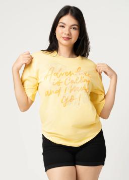 Embrace your wanderlust with this vibrant yellow crew neck tee. Featuring the inspiring "Adventure is Calling and I Must Go" graphic, it's the perfect comfortable and stylish companion for your next escapade. Crafted from soft, breathable cotton, this t-shirt offers all-day comfort whether you're exploring new trails or simply dreaming of them. Let this tee be your daily reminder to chase those horizons and live out your adventures.