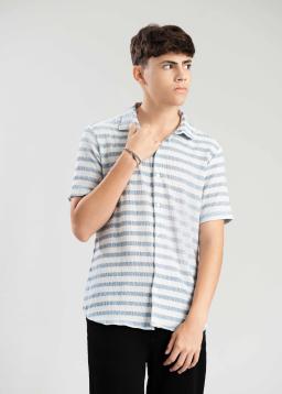 Effortlessly cool and incredibly comfortable, this crinkled blue and white striped short sleeve shirt is your new go-to for laid-back style. The unique crinkled texture adds visual interest and ensures a relaxed, lived-in feel from the very first wear. Its breathable fabric makes it perfect for warmer days, offering a breezy feel without sacrificing style. The classic stripe pattern is timeless and versatile, easily pairing with shorts, jeans, or chinos for a smart-casual look that’s always on point.