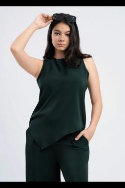 Sleek and sophisticated, this dark green mock neck tank top offers a versatile foundation for any outfit. The flattering neckline and comfortable fit make it perfect for layering or wearing on its own. A wardrobe staple in a rich, timeless hue.