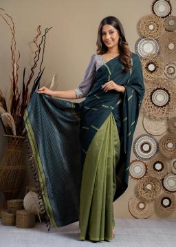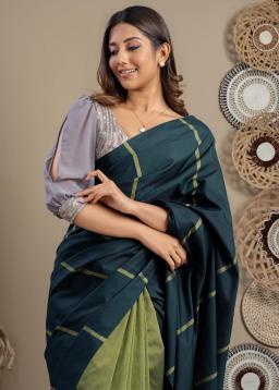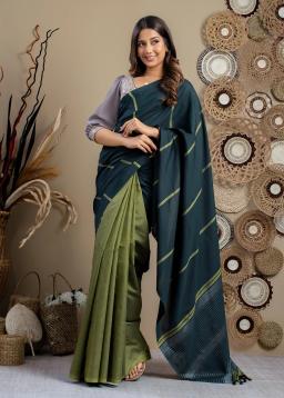 Experience the artistry of Dual-Tone Handloom Cotton. Woven by skilled artisans, this fabric showcases a captivating interplay of two distinct colors, creating a unique visual depth and artisanal charm.