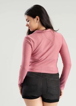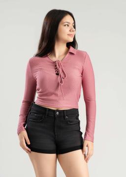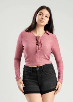 Embrace chic comfort with our Dusty Pink Long-Sleeve Lace-Up Top. Crafted from a soft, breathable fabric, this versatile piece features a flattering lace-up neckline that adds a touch of playful allure. Perfect for layering or wearing solo, it transitions effortlessly from casual daytime adventures to evening outings. The long sleeves offer cozy coverage, while the adjustable tie allows you to customize your fit and style. Elevate your everyday wardrobe with this effortlessly stylish and comfortable essential.
