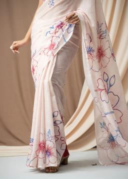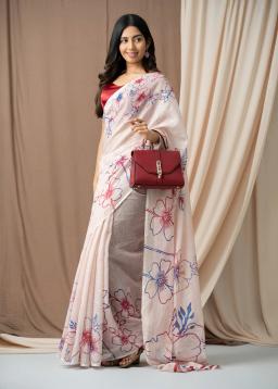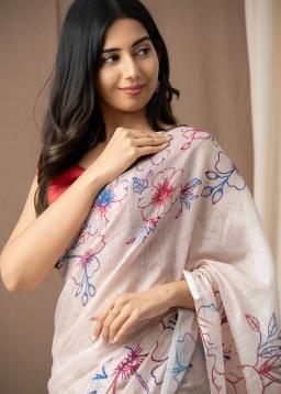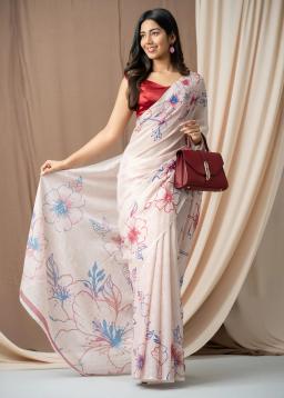 Drape yourself in exquisite luxury with this Elegant White Satin Silk Saree. The smooth, lustrous satin silk offers a beautiful drape and a rich feel against your skin. Adorned with a vibrant red floral print, this saree exudes timeless charm and sophisticated allure.
