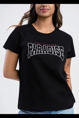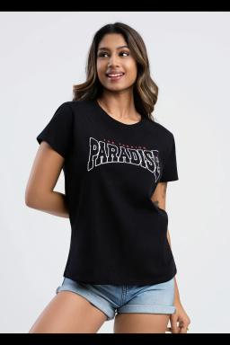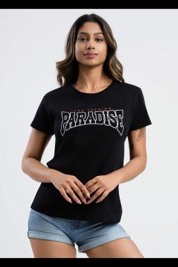 Effortlessly chic, the Essential Black Paradise Tee is a wardrobe staple. This women's graphic top features a stylish design, perfect for everyday wear or a night out. Soft, comfortable fabric ensures all-day comfort.