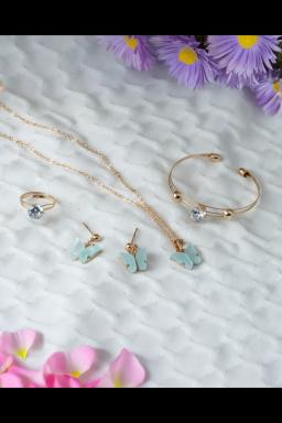 Elevate your jewelry collection with our Gold-Plated Butterfly Bangle, Necklace & Earring Set. Featuring delicate butterfly motifs and a radiant gold-plated finish, this coordinated set exudes elegance and charm, making it the perfect choice for both everyday wear and special occasions.