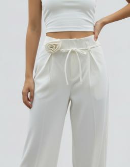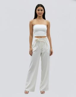 Effortless chic meets comfortable style. These high-waisted, wide-leg pants are designed to flatter every figure, cinching your waist with a chic tie detail for a perfectly personalized fit. Crafted from breathable fabric, they offer all-day comfort without compromising on sophistication. Transition seamlessly from day to night, office to weekend, in these versatile and on-trend trousers. Elevate your wardrobe with this essential piece that promises both style and ease.