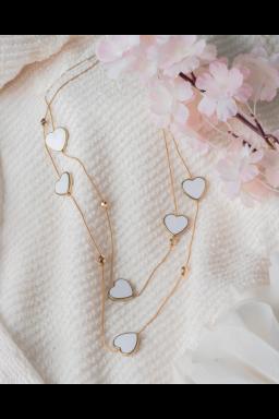 Add a romantic touch to your style with our Layered Gold-Toned Necklace with White Heart Pendants. Designed with multiple delicate gold-toned chains adorned with white heart charms, this necklace brings a chic and feminine vibe that works beautifully for both casual and dressy outfits.