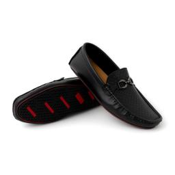 Step into sophisticated style with these Men's Black Horsebit Buckle Embossed Loafer Shoes. Crafted from premium embossed leather, they offer a refined look perfect for any occasion, from formal events to smart casual outings. The iconic horsebit buckle adds a timeless touch of equestrian elegance, while the cushioned insole ensures exceptional comfort with every stride. Elevate your wardrobe with these versatile and undeniably chic loafers, designed for the modern man who values both style and lasting comfort.