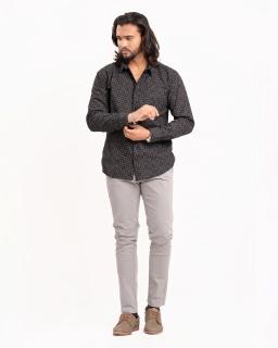 Make a statement with this sharp men's black long sleeve shirt. Featuring a sophisticated geometric print, it adds modern flair to any outfit. Crafted for comfort and style, this shirt is perfect for both casual outings and dressed-up evenings.