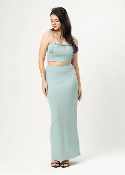 Effortless elegance meets vibrant charm with our Mint Green Maxi Skirt. Crafted from a breathable, flowing fabric, this skirt drapes beautifully for a flattering silhouette that's perfect for any occasion.