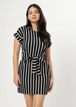 Effortless chic meets everyday comfort in our Monochrome Vertical Stripe Belted Mini T-Shirt Dress. This versatile piece features a flattering vertical stripe pattern that elongates your silhouette, while the included belt cinches your waist for a polished look. Crafted from soft, breathable fabric, it's your go-to for a stylish and comfortable outfit, perfect for any casual occasion or can be dressed up with heels and accessories. Simply slip it on and go – instant style, guaranteed.