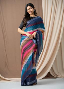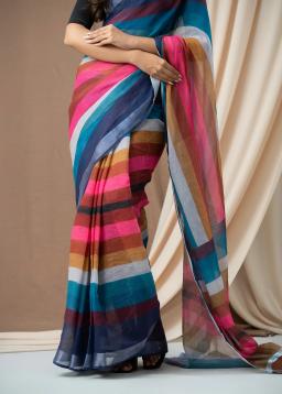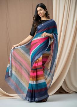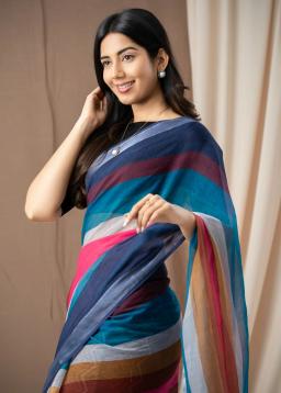Drape yourself in vibrant elegance with our Multicolor Striped Cotton Saree. Crafted from breathable, soft cotton, this saree offers unparalleled comfort for all-day wear.