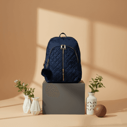 Effortlessly blend style and practicality with this Navy Blue Quilted Daypack. Featuring chic gold zippers for a touch of elegance, this rucksack is your perfect companion for casual outings and everyday adventures. Its comfortable design makes it ideal for carrying essentials while adding a fashionable flair to any outfit. Discover the perfect blend of fashion and function.