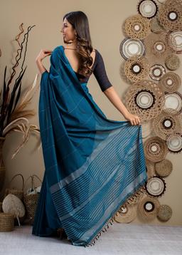 Drape yourself in the regal allure of our Peacock Teal Saree. Crafted from luxurious fabric, this exquisite piece shimmers with a captivating jewel-toned teal, reminiscent of a peacock's vibrant plumage. Its elegant drape and intricate details create a sophisticated silhouette, perfect for making a statement at weddings, festive celebrations, or any special occasion.