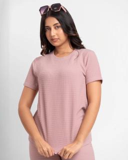 Embrace effortless style with this Pink Textured Round-Neck T-Shirt. Crafted from a soft, breathable fabric, its unique texture adds subtle dimension for a look that's anything but ordinary.