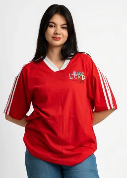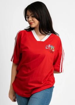 Score effortless style with this Red Casual Fit T-shirt. Featuring crisp white contrast stripes, it adds a touch of sporty flair to your everyday look. Crafted for comfort and designed for versatility, this tee is your new go-to for relaxed days and casual outings. Easy to pair with jeans, shorts, or even layered under a jacket, it's the perfect blend of cool and comfortable. Embrace laid-back vibes and stand out with understated charm.