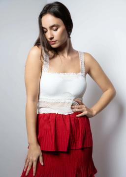 Unleash your inner dancer with the Red Tiered Pleat Flair Skirt. This vibrant skirt features graceful tiers and playful pleats that create captivating movement with every step.
