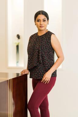 Stylish and comfortable, this round neck sleeveless printed top is perfect for warm weather. The vibrant print adds a touch of fun to any outfit. Lightweight and breathable fabric ensures all-day comfort.