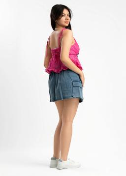 Effortlessly chic, this ruched front cami top is designed to flatter. Delicate ruffles at the hem add a touch of playful sophistication, making it perfect for dressing up or down. Crafted for comfort and style, its adjustable straps ensure a perfect fit. Elevate your wardrobe with this versatile and feminine essential.
