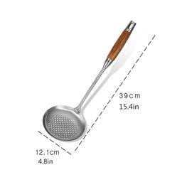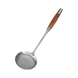 Effortlessly lift, drain, and serve your favorite fried and cooked foods with our premium Stainless Steel Skimmer. Featuring a durable stainless steel slotted head, it's perfect for straining oils, scooping pasta, or retrieving delicate items from boiling liquids. The ergonomic wooden handle provides a comfortable, secure grip for safe and precise handling, while adding a touch of natural warmth to your kitchen. Built to last, this versatile skimmer is an essential tool for any home cook.