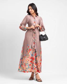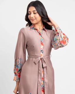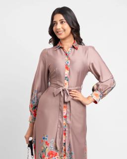 Effortless chic meets everyday comfort in our Taupe Floral Print Belted Shirt Dress. Crafted from a soft, breathable fabric, this versatile dress features a delicate taupe floral print that adds a touch of understated elegance.
