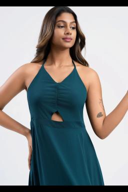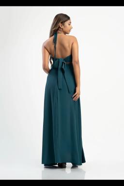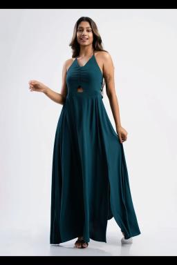 Make a statement in this elegant teal sleeveless maxi dress. The keyhole neckline adds a touch of sophistication, while the flowing silhouette ensures comfort and style. Perfect for any special occasion.