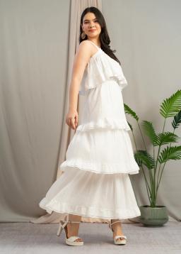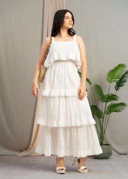 Effortless elegance awaits with The Cloud-White Tiered Midi. This dress features delicate, flowing tiers that create a beautiful, flattering silhouette.
