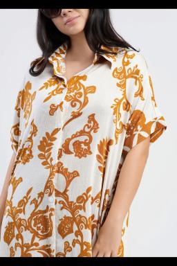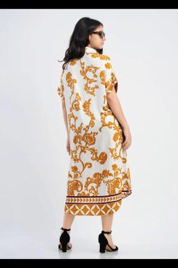 Channel timeless elegance with our Vintage-Style Baroque Print Midi Shirt Dress. Adorned with intricate baroque patterns, this dress features a classic shirt collar, button-down front, and a flattering midi length, making it perfect for both refined daywear and sophisticated evenings.