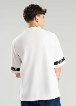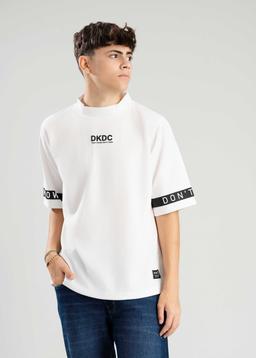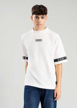 Effortlessly cool meets premium comfort in the White DKDC T-Shirt with Contrast Sleeve Tape. Crafted from soft, breathable fabric for all-day wearability, this tee features sharp contrast tape on the sleeves for a subtle yet striking athletic-inspired detail. A modern essential for laid-back vibes and elevated casual style. Perfect for layering or wearing solo.