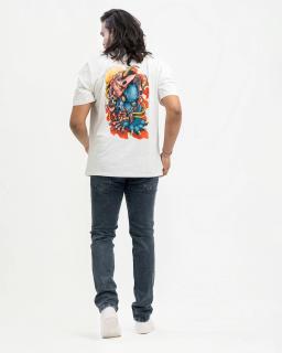 White Graphic T-Shirt with Traditional Asian Demon Art