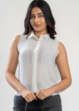 Effortless chic meets breathable comfort in this White Perforated Placket Top. Crafted from a lightweight, textured fabric, it features a subtle perforated placket that adds a touch of refined detail. Perfect for layering or wearing solo, its airy construction keeps you cool and stylish all day long. The classic white hue makes it a versatile wardrobe essential, easily dressed up or down for any occasion. Experience sophisticated ease and subtle charm.