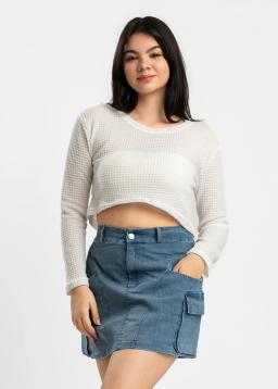 Effortlessly chic and incredibly comfortable, this white waffle-knit long-sleeve crop top is your new wardrobe essential. Its textured fabric offers a cozy feel while the cropped silhouette adds a modern, flattering edge. Perfect for layering or wearing on its own, it's a versatile piece that transitions seamlessly from casual days to nights out. Elevate your everyday style with its soft touch and easy-to-wear design.