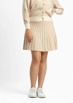 Effortlessly chic, this beige knit pleated skirt offers a blend of comfort and sophisticated style. The soft, flexible knit drapes beautifully, creating elegant movement with every step, while the timeless pleats add a touch of refined texture. Perfect for transitioning from desk to dinner, it pairs seamlessly with blouses, sweaters, or even a simple tee. Embrace versatile sophistication with this wardrobe essential.