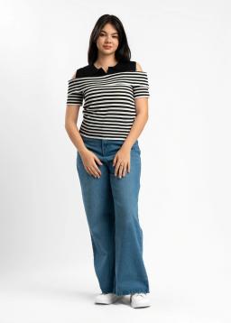 Chic and comfortable, this black and white striped cold shoulder top is a versatile addition to any wardrobe. The classic stripes create a flattering silhouette, while the cold shoulder detail adds a touch of modern flair. Crafted from soft, breathable fabric, it's perfect for effortless everyday style. Dress it up with heels or keep it casual with your favorite jeans for a look that's both stylish and relaxed.