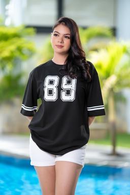 Women's Black Athletic Jersey T-Shirt - Oversized 89 Graphic Tee