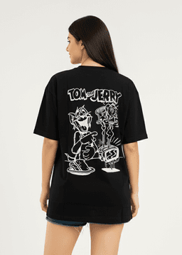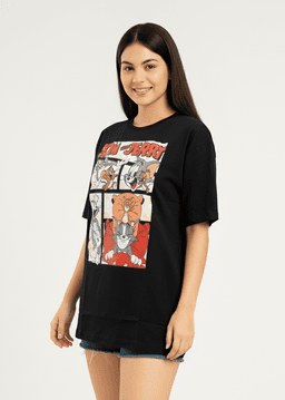 Unleash your inner playful spirit with this cool black cartoon graphic t-shirt for women. Crafted from soft, breathable cotton, it offers all-day comfort and a relaxed fit perfect for any casual outing.