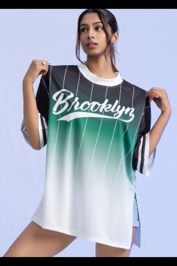 Relaxed fit, oversized tee featuring a stylish ombre striped design. Soft and comfortable fabric. Perfect for casual everyday wear. The Brooklyn tee adds effortless style to your wardrobe.
