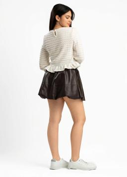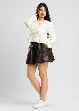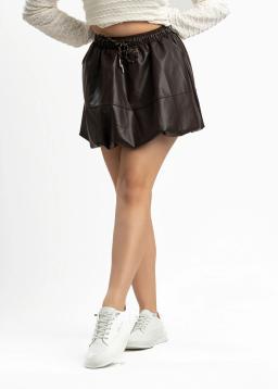 Command attention in this chic Women's Brown Faux Leather Drawstring Mini Skirt. Crafted from supple, high-quality faux leather, it offers a luxurious look and feel without the hefty price tag.