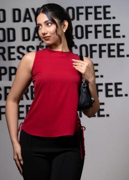 Effortless style meets customizable comfort in our Women's Casual Red Tank Top. Designed for your busy life, this vibrant red tank offers a flattering fit thanks to its innovative adjustable side drawstrings.