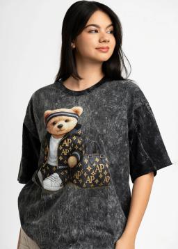 Embrace a touch of playful comfort with our Women's Crew Neck Acid Wash Teddy Bear T-Shirt. Featuring a unique acid wash finish for a vintage-inspired look, this tee showcases an adorable teddy bear graphic that adds a dose of charm to any casual outfit. Crafted from soft, breathable cotton, it offers all-day comfort and a relaxed fit perfect for layering or wearing on its own. Elevate your everyday style with this effortlessly cool and huggably soft statement piece.